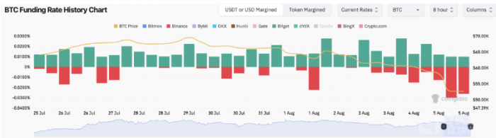過去24小時(shí)內(nèi),Bitcoin期貨融資利率轉(zhuǎn)為負(fù)值,表明市場上空頭頭寸需求增加,交易者紛紛押注Bitcoin價(jià)格繼續(xù)下跌。