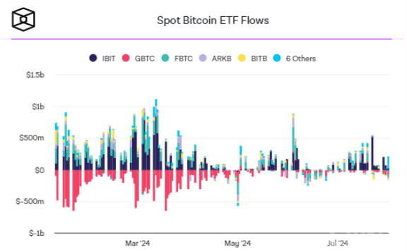 上周,投資銀行摩根士丹利表示,從8月7日起,將允許其財(cái)務(wù)顧問向特定客戶提供現(xiàn)貨Bitcoin ETF。伯恩斯坦分析師預(yù)計(jì),第三季度和第四季度更多的經(jīng)紀(jì)公司會(huì)采用Bitcoin,從而為Bitcoin資產(chǎn)配置提供更多途徑。截至目前,Bitcoin ETF 今年的流入量已超過170億美元。