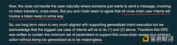 在ERC-7683的論壇頁面中,面對覺得跨鏈資產(chǎn)轉移功能太微小、不夠通用、支持生態(tài)不夠多的質疑,開發(fā)者們對ERC標準本身的職責展開了討論。極簡ERC的支持者們認為工具級別的標準已經(jīng)足夠解決目前存在的問題,可以與現(xiàn)有的標準結合,采用阻力也會相對較小。