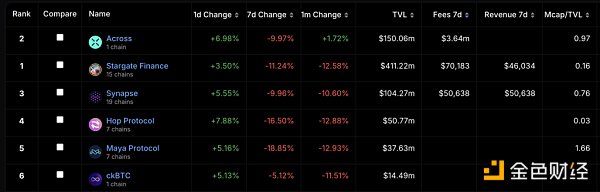 而以跨鏈DeFi協(xié)議為代表的組件類意圖解決方案相較于傳統(tǒng)的跨鏈模式(如Lock&Mint,Burn&Mint)已經(jīng)顯現(xiàn)出較為明顯的優(yōu)勢。作為AcrossProtocol的旗艦產(chǎn)品,AcrossBridge基于意圖的架構使其在EVM生態(tài)的跨鏈橋中擁有第一梯隊的速度、低廉價格和收費能力,在小額跨鏈情境中的優(yōu)勢尤為明顯。
