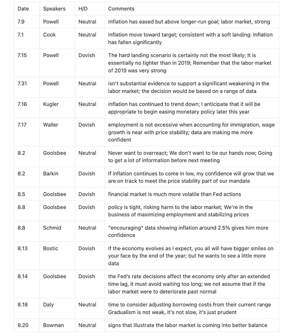 美聯儲動向:美聯儲官員發(fā)言顯示政策調整謹慎,9月點陣圖預計將繼續(xù)保持寬松立場。