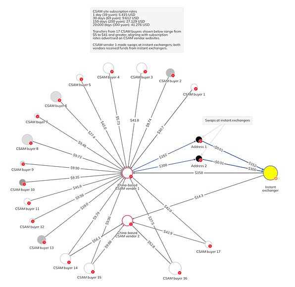 自2023年底以來,cn兒童性虐待材料(CSAM)供應商的報告有所增加。數據顯示,cn供應商在全球CSAM流入量中的占比顯著上升,今年第一季度達到38.8%。這些供應商通常提供crypto支付的人民幣兌換率,而大多數買家選擇購買一個月或更長時間的訪問權限。