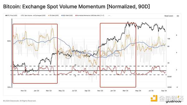 Glassnode最新一期周報的Bitcoin鏈上TxVolume圖表很有迷惑性,23年10月至今的TxVolume30天SMA結構,與20年10月至21年9月的有很強的相似性,會讓市場一些人得出「我們已經身處超級大牛市且牛市已經過半」的結論。