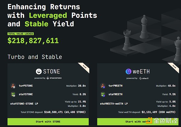 turPSTONE不僅有10倍的固定杠桿率,同時還能獲得StakeStone的2倍積分乘數,即最后能獲得20倍的StakeStone積分。去除最后向staYSTONE支付固定利率的成本,在基金到期時,turPSTONE:STONE<1
