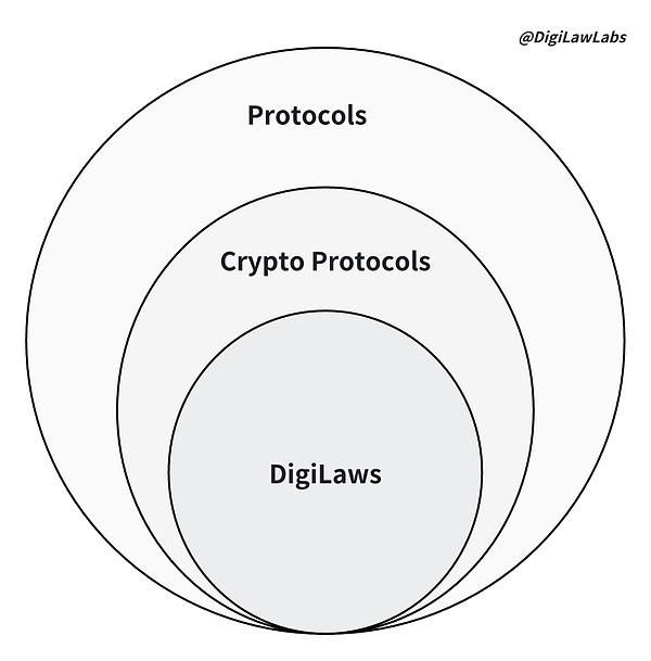 5.協議(各種條約、合同、規則)>加密協議(Blockchain協議與智能合約協議)>DigiLaw(僅去中心且Tokens化的加密協議)。