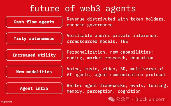 目前,我們正處于類似于2016年Ethereum早期實驗的階段。但到明年中期或后期,我們可能會看到代理處理復雜任務、自動化流程并創造可觀的現金流。用機器人取代人類工作是不可避免的——不過至少你可以擁有它們的Tokens。