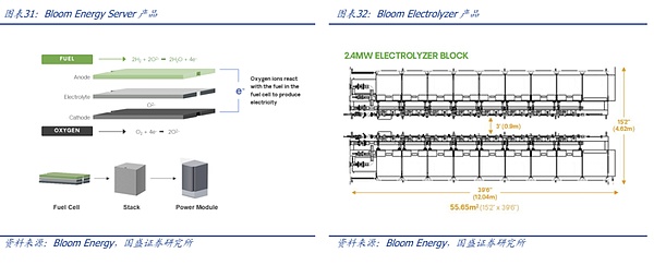 核心技術:公司核心技術包括固體氧化物燃料電池(SOFC)和固體氧化物電解槽(SOEC),SOFC系統在使用100%氫氣時提供高效的電力輸出,電氣效率高達65%,遠超傳統能源系統。BloomEnergy的燃料電池系統還能夠集成熱電聯產(CHP)技術,使得總能效高達90%,從而有效降低能源消耗和碳排放。此外,SOEC技術可用于高效的氫氣生產,是清潔能源轉型中的關鍵技術之一。