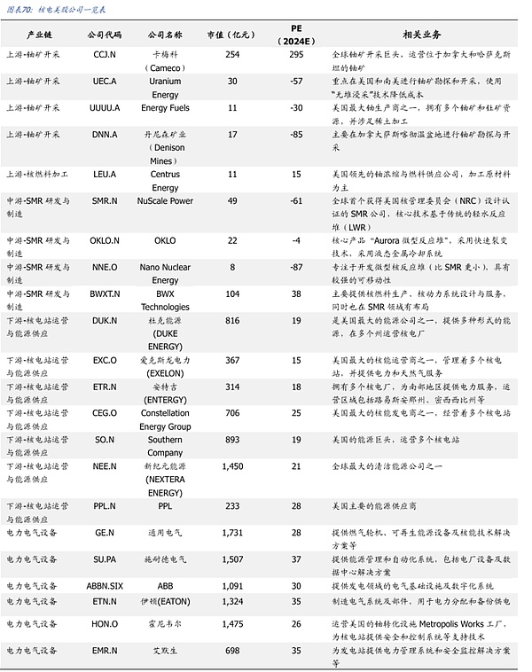 SMR核電單一方案即可滿足供電需求,因此我們梳理了產業鏈上中下游參與者: