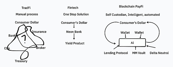 PayFi利用Blockchain和DeFi打破了這一模式。通過整合支付基礎設施與DeFi能力,PayFi將每一美元轉化為智能的、自主的資本,可以自動尋找產生收益的機會。借助Blockchain的快速結算,美元可以保持流動性的同時提供不錯的收益。