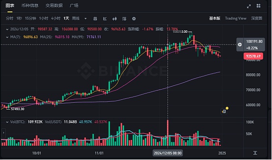 圣誕節如期而至,消息面也戛然而止,資金保守回流,盤面也多處于陰跌趨勢,但顯而易見的是,加密牛市才剛剛開始,特朗普還未正式上臺,宏觀環境持續向好。潛龍在淵的2024即將過去,2025,見龍在田或許就是加密市場的下一步。