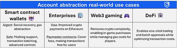 像Visa這樣的主要公司今天正在使用賬戶抽象。游戲使用它來簡(jiǎn)化復(fù)雜性。DeFi應(yīng)用使交易變得更加簡(jiǎn)單。
