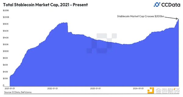 穩(wěn)定幣市值在2024年達(dá)到2000億美元|圖片來(lái)源:CoinDesk