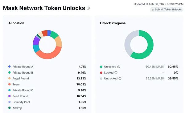 數(shù)據(jù)來(lái)源:CoinMarketCapTokens解鎖進(jìn)度