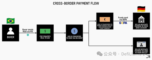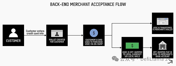 場(chǎng)外交易合作伙伴將法定貨幣兌換成USDC,并將其發(fā)送到本地合作伙伴的錢包。
