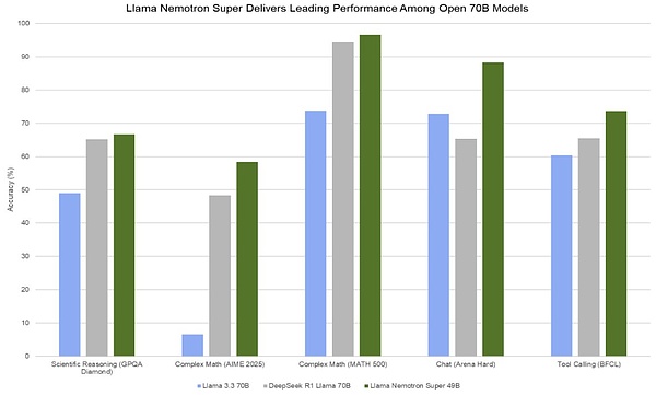 用這個軟件升級,NVIDIA構筑了自己反擊Groq等專用推理AISC芯片的城防。必須軟硬搭配,才能主導推理基礎設施。2)LlamaNemotron新模型秀高效,但還是打不過DeepSeek