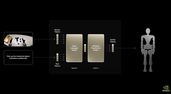 它采用雙系統架構,有快速反應的“系統1“和深度推理的“系統2“。它的全面微調,使得其能處理抓取、移動、雙臂操作等通用任務。而且可以根據具體機器人進行完全定制,機器人開發者可用真實或合成數據進行后訓練。這使得這一模型實際上可以被部署在各種各樣形狀各異的機器人中。
