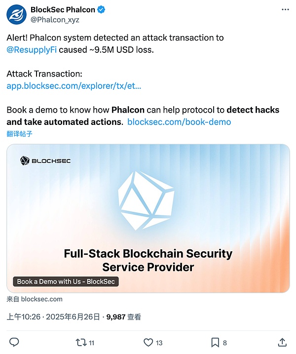 2025年6月26日02:26(UTC),項(xiàng)目方未果并確認(rèn)無法造成更多損失后,BlockSec發(fā)布公開預(yù)警[2]。