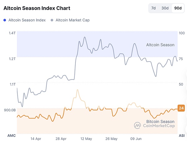 BTC主導指數(shù):截至6月31日,當前BTC主導指數(shù)為64%,持續(xù)攀升。