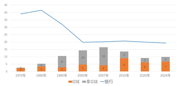 注:“GSE”為GSE發行的證券化產品占比;“非GSE”為GSE之外的機構發行的證券化產品占比。