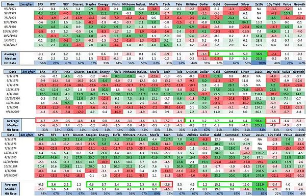 如果進(jìn)一步看個股和板塊結(jié)構(gòu),NedDavisResearch的研究顯示美股中的防御性板塊在歷次降息中的表現(xiàn)會更好: