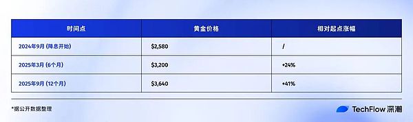 不過,對于風(fēng)險資產(chǎn)的投資玩家來說,債券更多的起到資金成本的“錨”的作用。如果看到國債收益率暴跌,而公司債收益率不降反升,說明市場在尋找安全資產(chǎn)。這時候,Bitcoin等風(fēng)險資產(chǎn)會被拋售的可能性更大。黃金:降息周期中的穩(wěn)定贏家