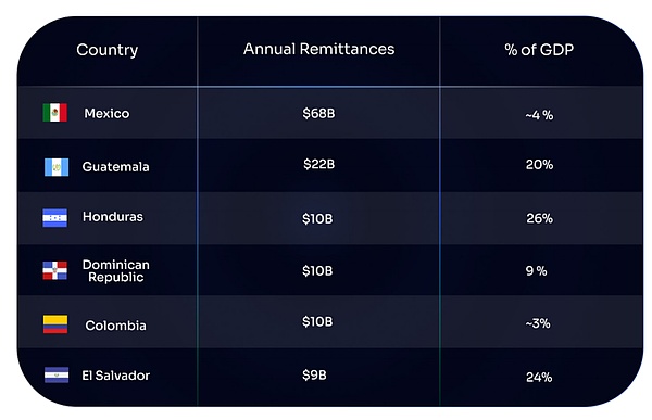 拉美已是加密原生。萬億級加密交易量,穩定幣占鏈上結算50–90%;1.22億無銀行賬戶卻手握智能手機;1630億美元僑匯仍被6–8%手續費盤剝;178%的通脹讓“拿到美元”成為剛需。