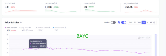 以BAYC為例,在今年1月中旬開始,地板從高點(diǎn)82ETH陰跌至低點(diǎn)44ETH,幾乎腰斬,現(xiàn)報(bào)價(jià)為51ETH。這一巨大的價(jià)格反轉(zhuǎn)已經(jīng)動(dòng)搖了大多數(shù)NFT持有者的信仰。相比之下,加密貨幣市場(chǎng)的表現(xiàn)如此強(qiáng)勁,導(dǎo)致一些持有NFT的人轉(zhuǎn)而進(jìn)入加密貨幣市場(chǎng)。