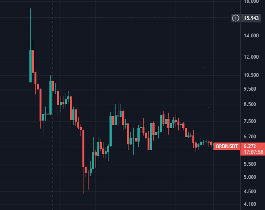 所以根據(jù)Ordinals給的思路,第一個(gè)基于BTC的Tokens協(xié)議:BRC-20橫空出世,協(xié)議的制定者domo就用BRC-20協(xié)議發(fā)行了第一款BTC鏈上的Token-$ordi,也就是ordinals前四個(gè)字母,初期鑄造成本約0.1U一聰,最高 17 U,現(xiàn)在跌到了 7 U,依舊是穩(wěn)穩(wěn)70倍漲幅啊。