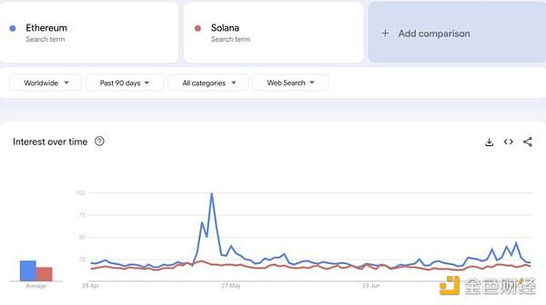 由于Solana用戶數量高于 ETH,我根據 Google Trends 進行了檢查, Google Trends對于每個用戶的價值應該是無感知的。